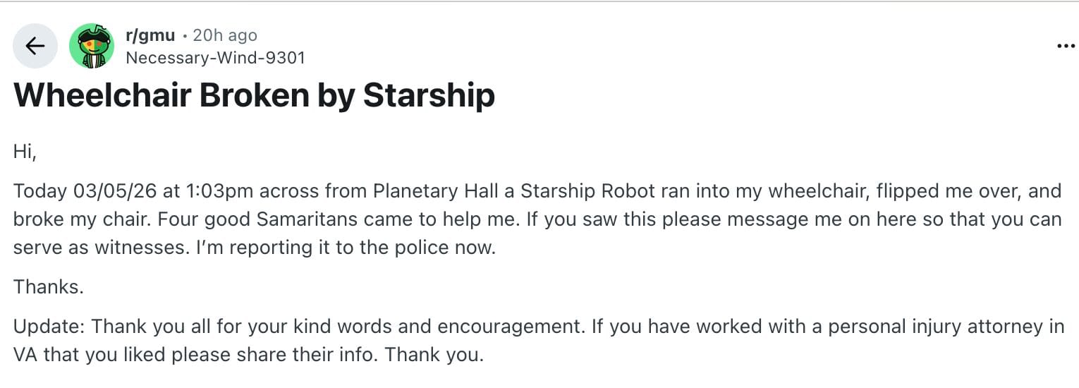 A debate on the safety of delivery bots.